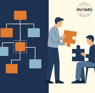 HUMARU không giúp bạn “đổi tên chức danh” để thấy khác mà cùng bạn xem lại cách các công việc liên kết và hỗ trợ nhau từ con người thật, vai trò thật. Tái cấu trúc không phải để đổi chỗ mà để hệ thống đồng bộ - thông suốt - sống được.